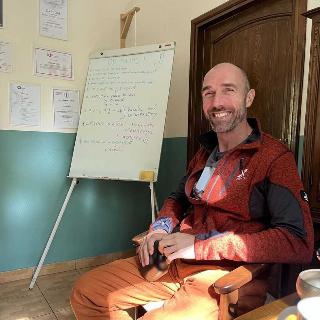 Naczelny gawędziarz 😉 Osteopata, fizjoterapeuta Reprezentacji Polski w latach 2007 – 2012. Praktyk Touch of Presence®, Prowadzący oraz uczestnik dziesiątek kursów i warsztatów w tematyce osteopatii, fizjoterapii, fizjologii, biochemii i pokrewnych.